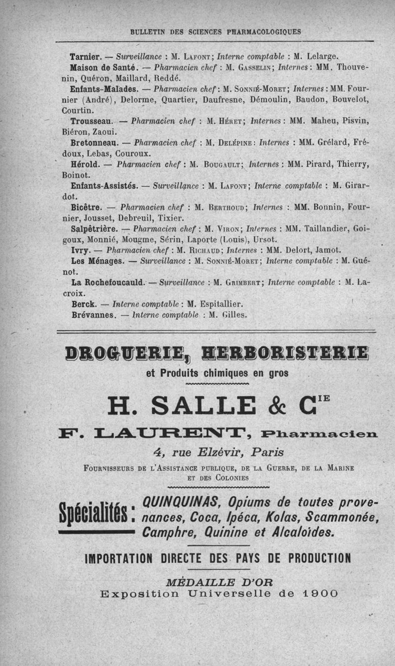 Bulletin des sciences pharmacologiques : organe scientifique et professionnel [Annexes : partie professionnelle]