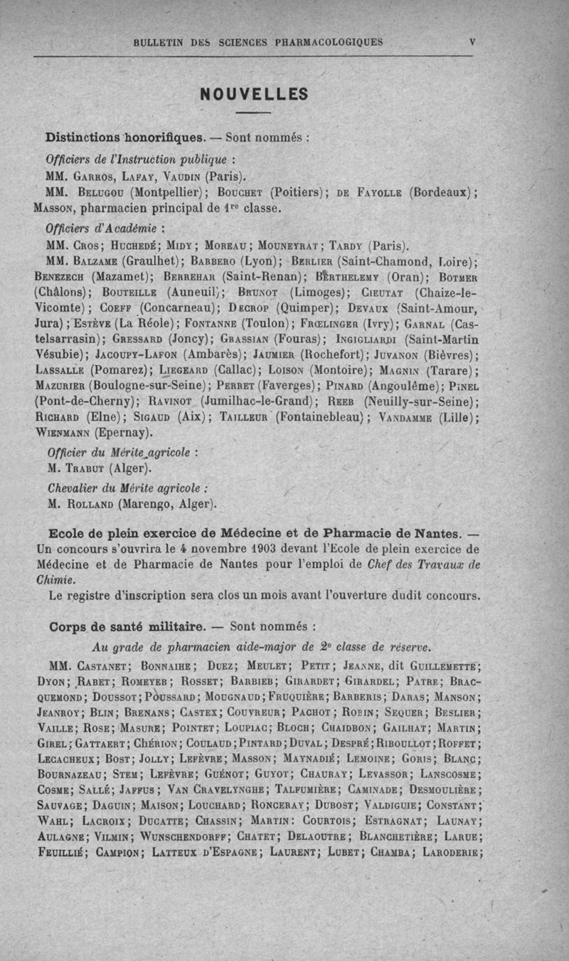 Bulletin des sciences pharmacologiques : organe scientifique et professionnel [Annexes : partie professionnelle]