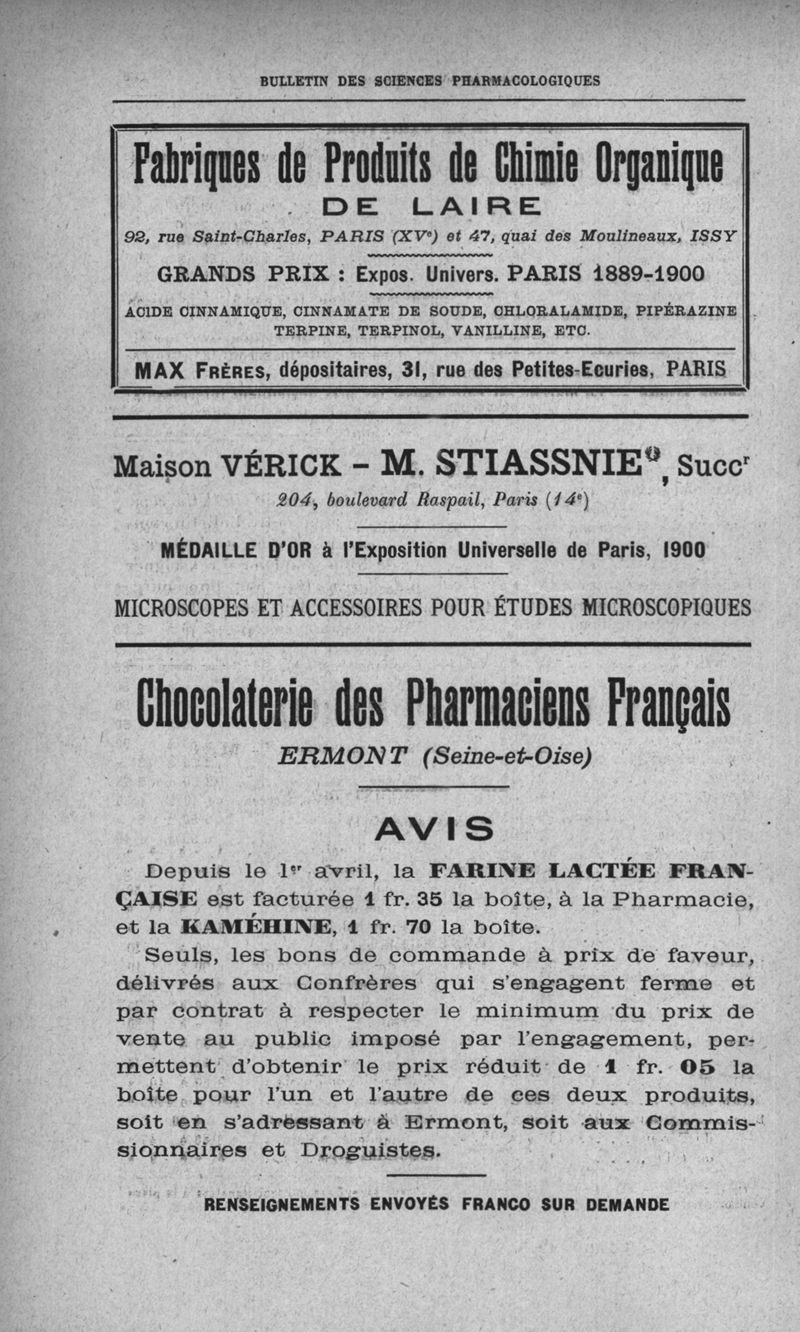 Bulletin des sciences pharmacologiques : organe scientifique et professionnel [Annexes : partie professionnelle et commerciale]
