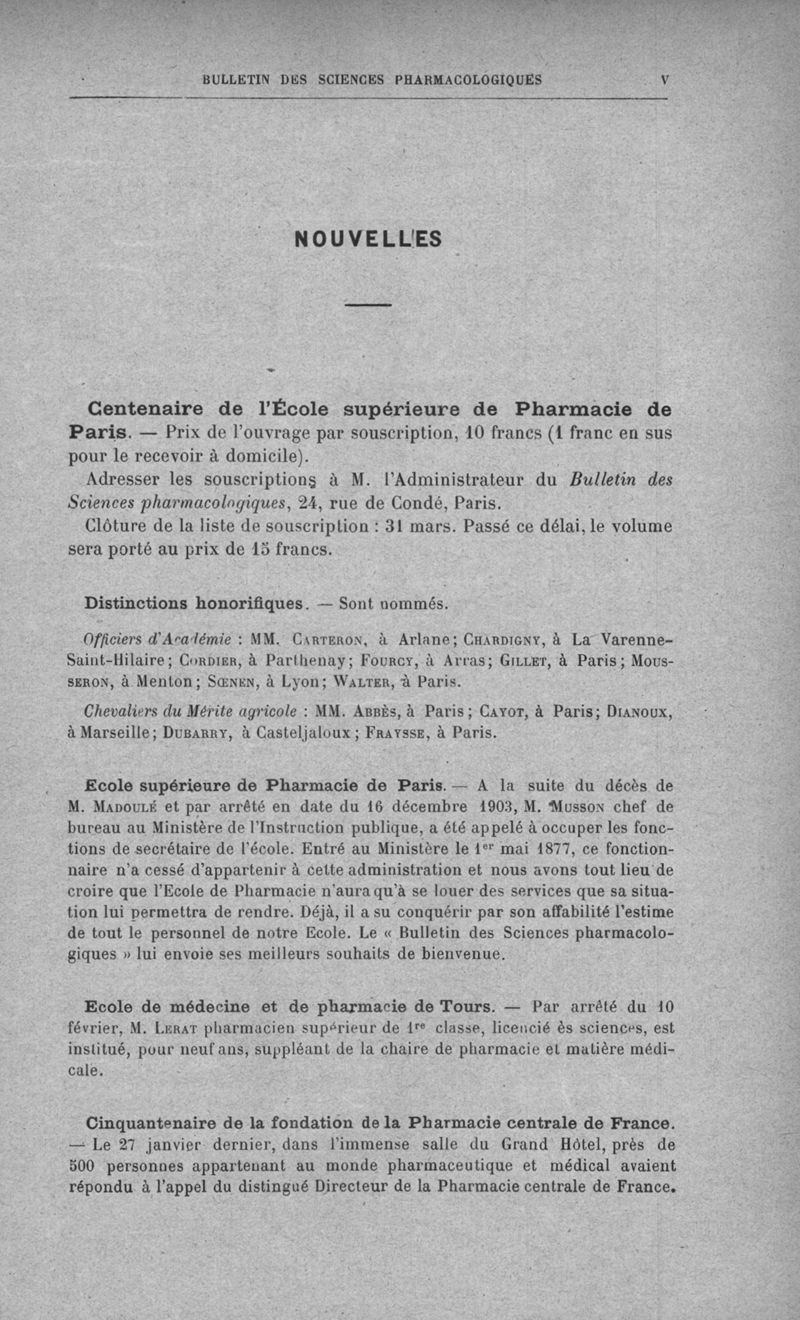 Bulletin des sciences pharmacologiques : organe scientifique et professionnel [Annexes : partie professionnelle et commerciale]