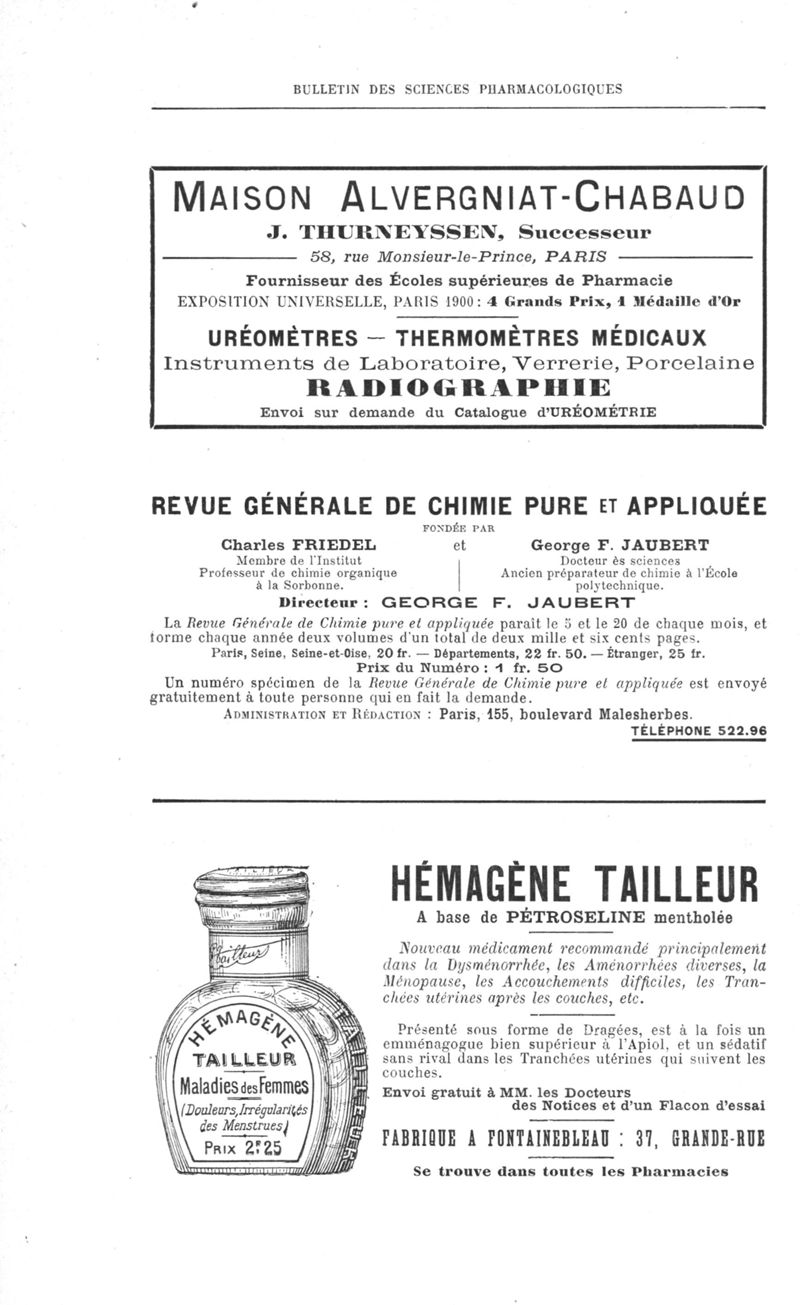Bulletin des sciences pharmacologiques : organe scientifique et professionnel [Annexes : partie professionnelle]
