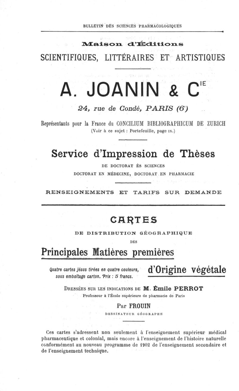 Bulletin des sciences pharmacologiques : organe scientifique et professionnel [Annexes : partie professionnelle]