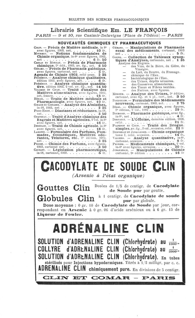 Bulletin des sciences pharmacologiques : organe scientifique et professionnel [Annexes : partie professionnelle]