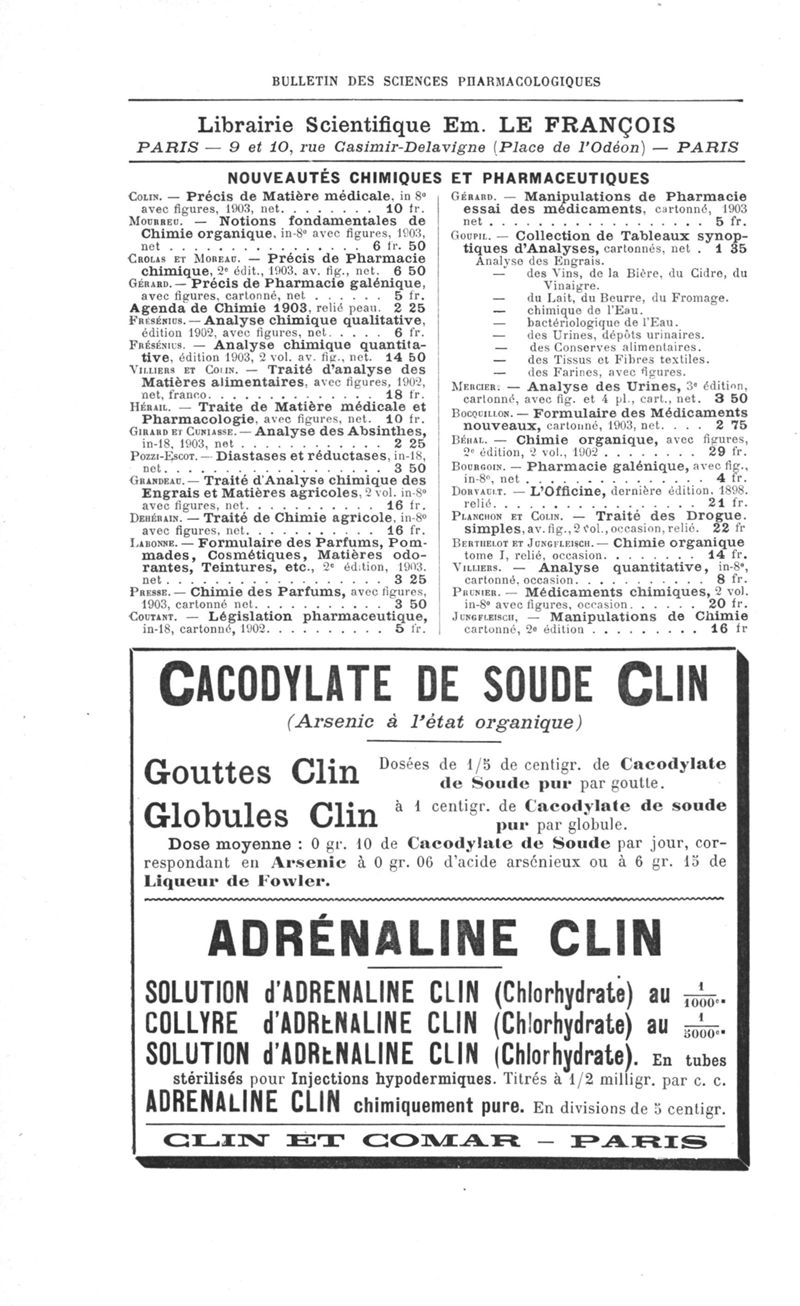 Bulletin des sciences pharmacologiques : organe scientifique et professionnel [Annexes : partie professionnelle]