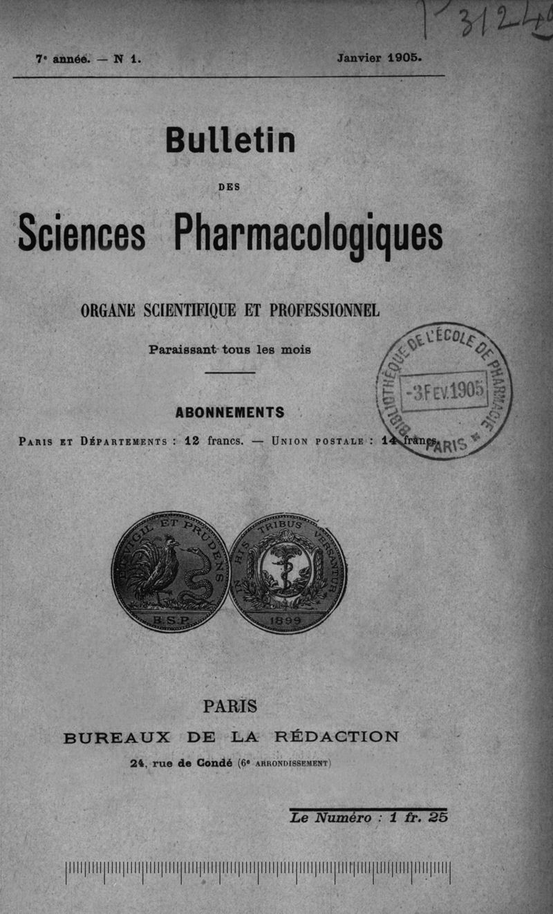 Bulletin des sciences pharmacologiques : organe scientifique et professionnel [Bulletin scientifique]