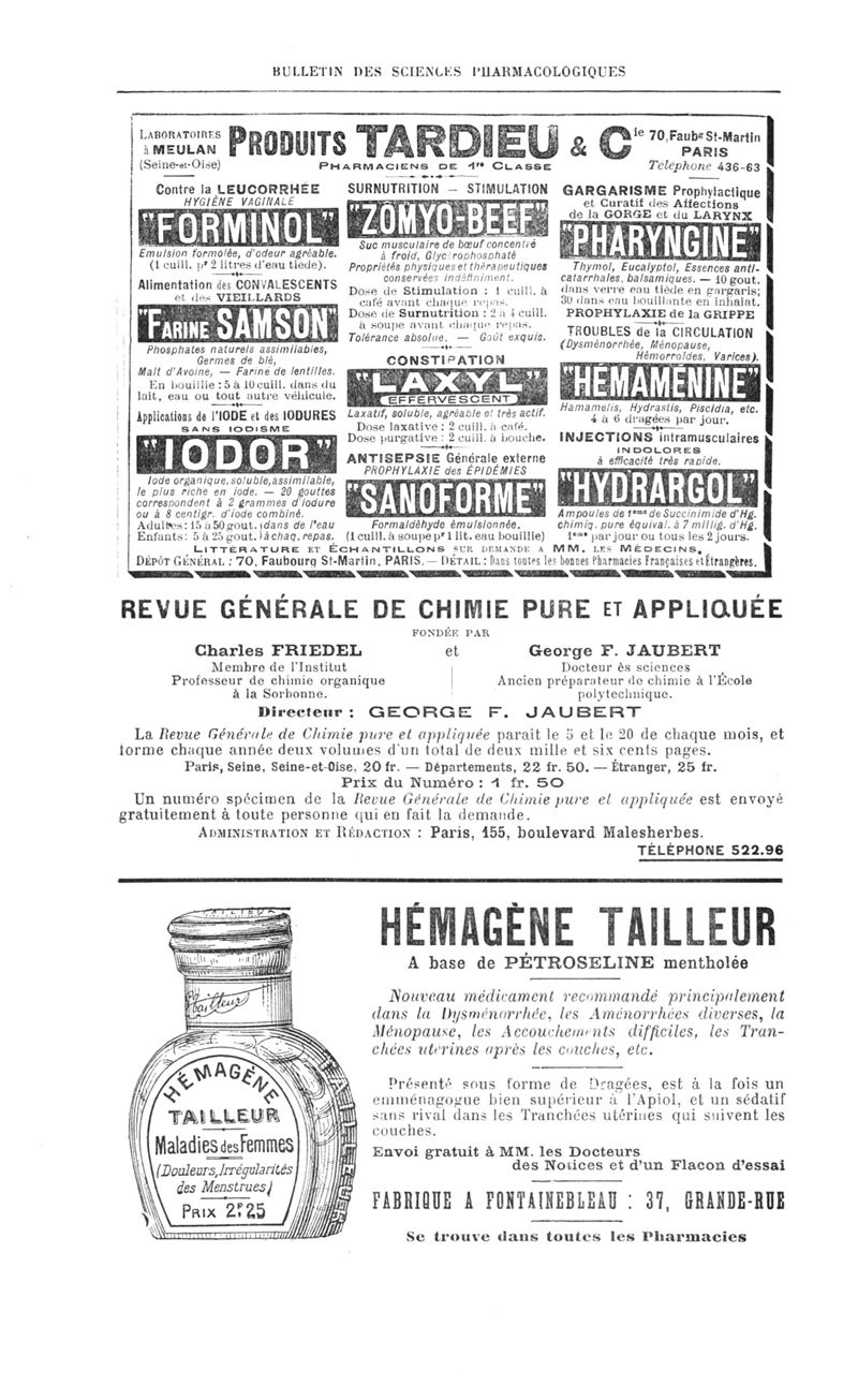 Bulletin des sciences pharmacologiques : organe scientifique et professionnel [Annexes : partie professionnelle et commerciale]