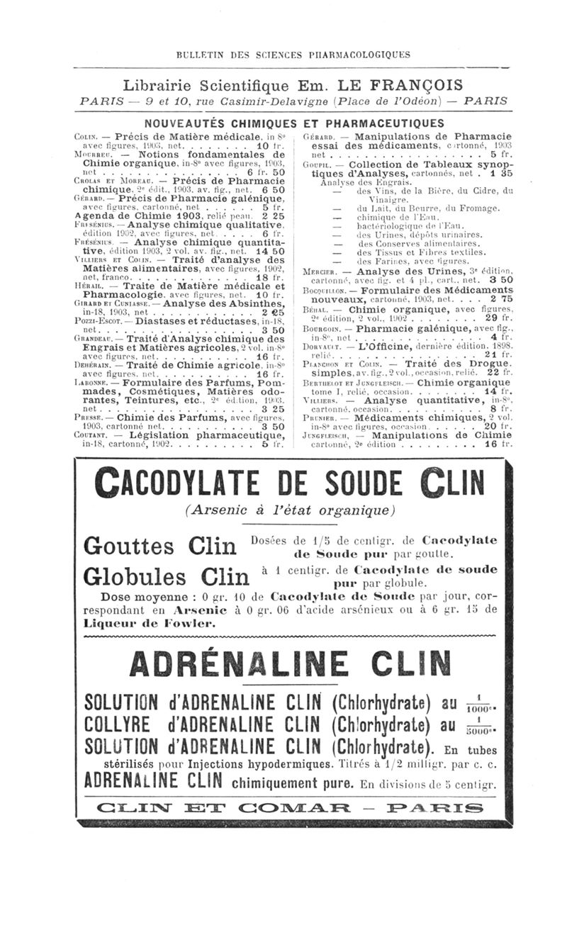 Bulletin des sciences pharmacologiques : organe scientifique et professionnel [Annexes : partie professionnelle et commerciale]
