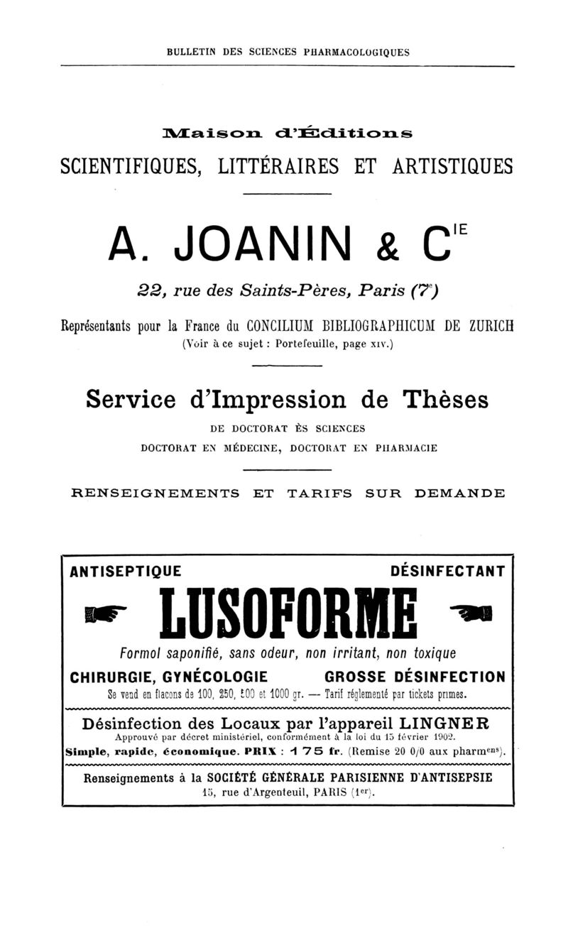 Bulletin des sciences pharmacologiques : organe scientifique et professionnel [Annexes : partie professionnelle et commerciale]