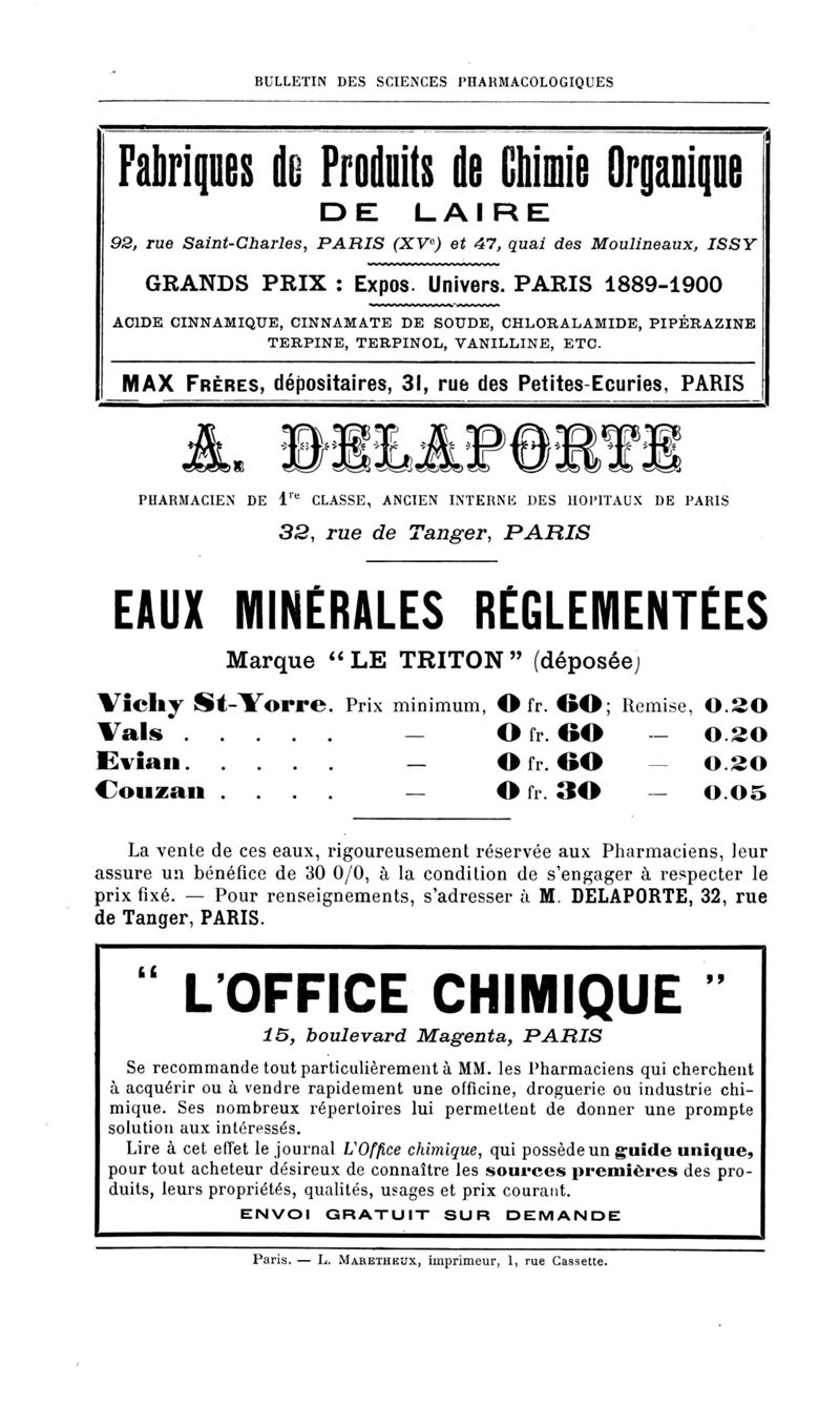 Bulletin des sciences pharmacologiques : organe scientifique et professionnel [Annexes : partie professionnelle et commerciale]