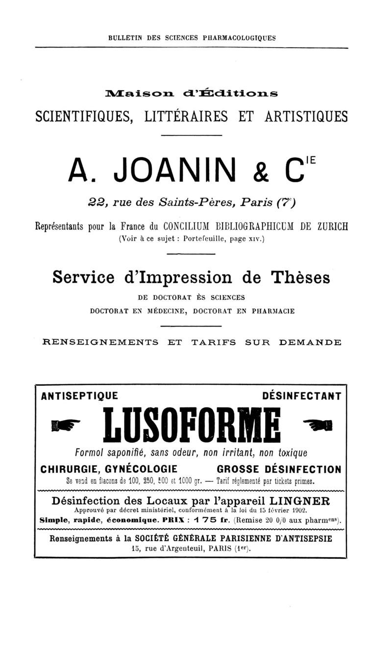 Bulletin des sciences pharmacologiques : organe scientifique et professionnel [Annexes : partie professionnelle et commerciale]