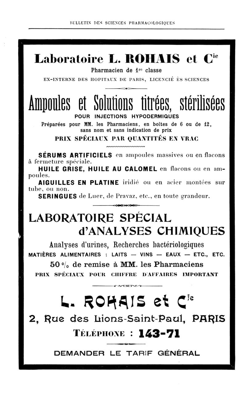 Bulletin des sciences pharmacologiques : organe scientifique et professionnel [Annexes : partie professionnelle et commerciale]