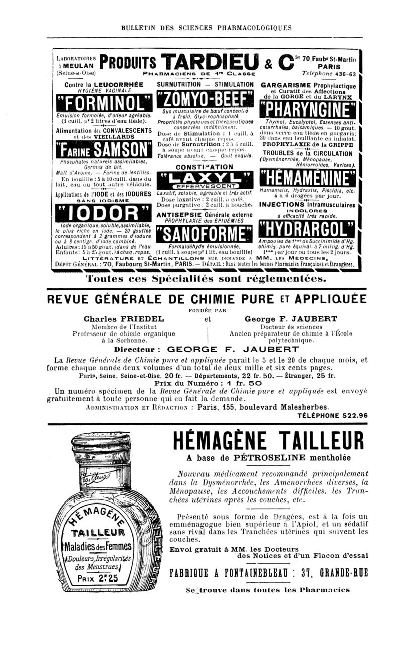 Bulletin des sciences pharmacologiques : organe scientifique et professionnel [Annexes : partie professionnelle et commerciale]