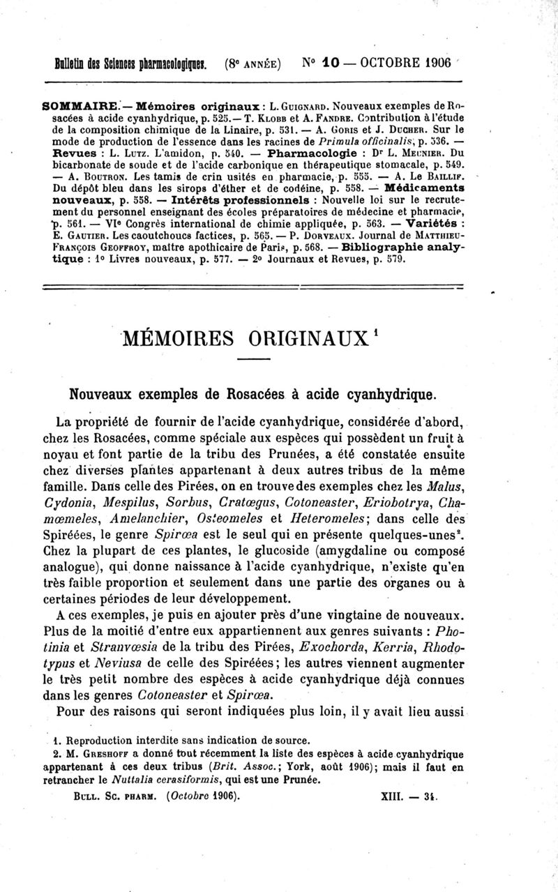 Bulletin des sciences pharmacologiques : organe scientifique et professionnel [Bulletin scientifique]