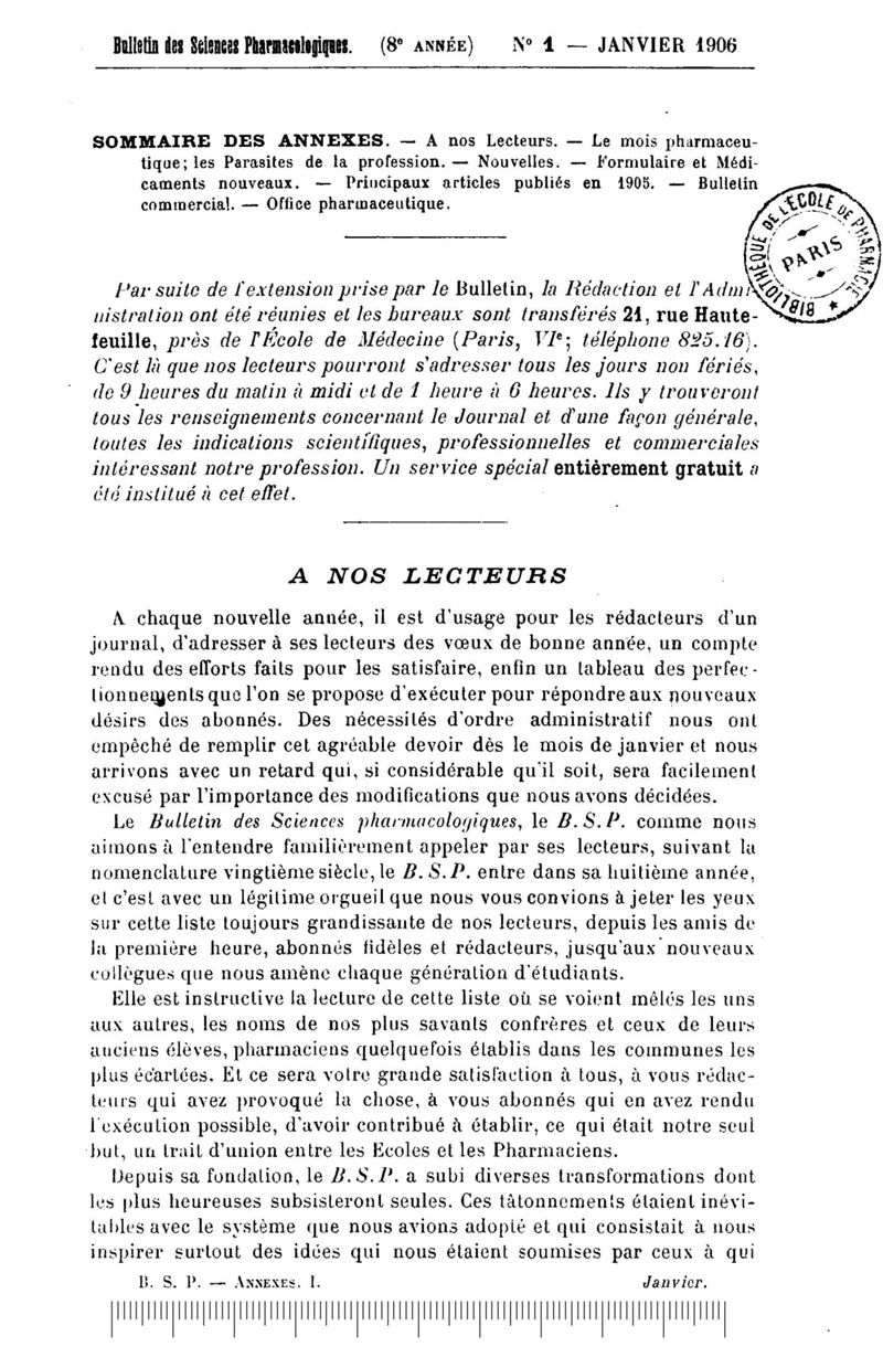 Bulletin des sciences pharmacologiques : organe scientifique et professionnel [Annexes : partie professionnelle et commerciale]