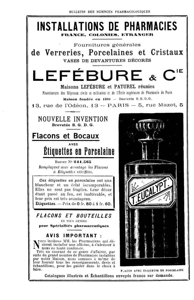 Bulletin des sciences pharmacologiques : organe scientifique et professionnel [Annexes : partie professionnelle et commerciale]