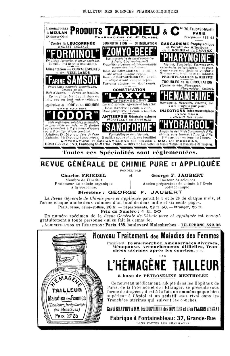 Bulletin des sciences pharmacologiques : organe scientifique et professionnel [Annexes : partie professionnelle et commerciale]
