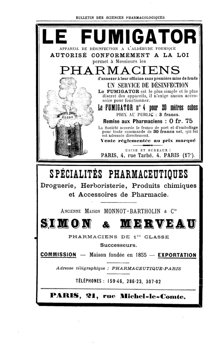 Bulletin des sciences pharmacologiques : organe scientifique et professionnel [Annexes : partie professionnelle et commerciale]