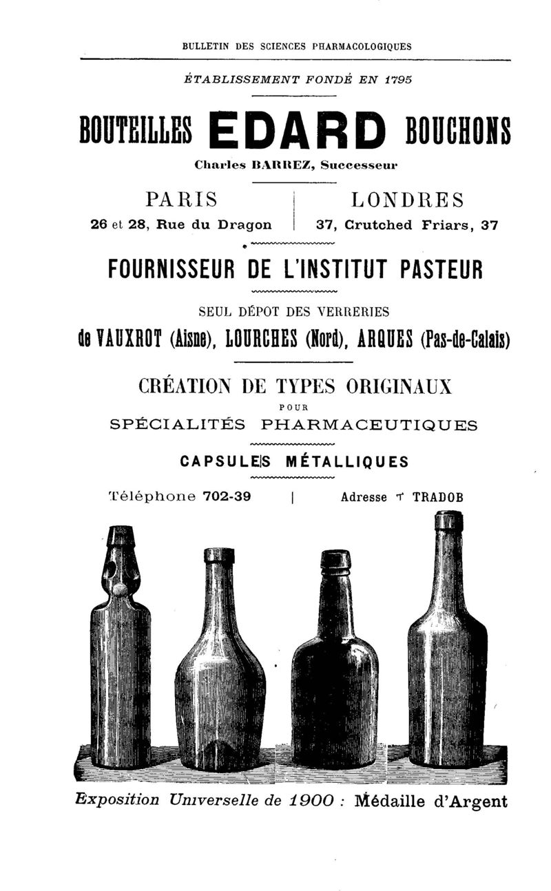 Bulletin des sciences pharmacologiques : organe scientifique et professionnel [Annexes : partie professionnelle et commerciale]