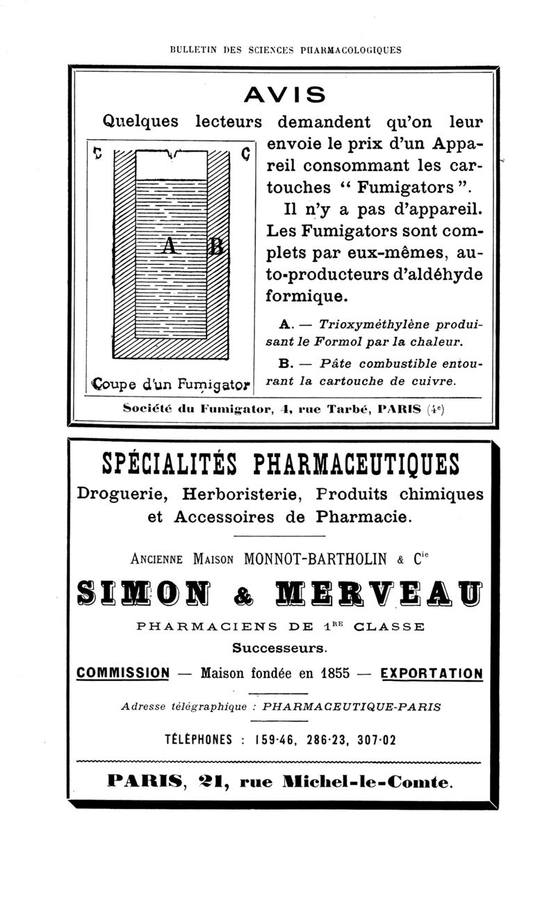 Bulletin des sciences pharmacologiques : organe scientifique et professionnel [Annexes : partie professionnelle et commerciale]