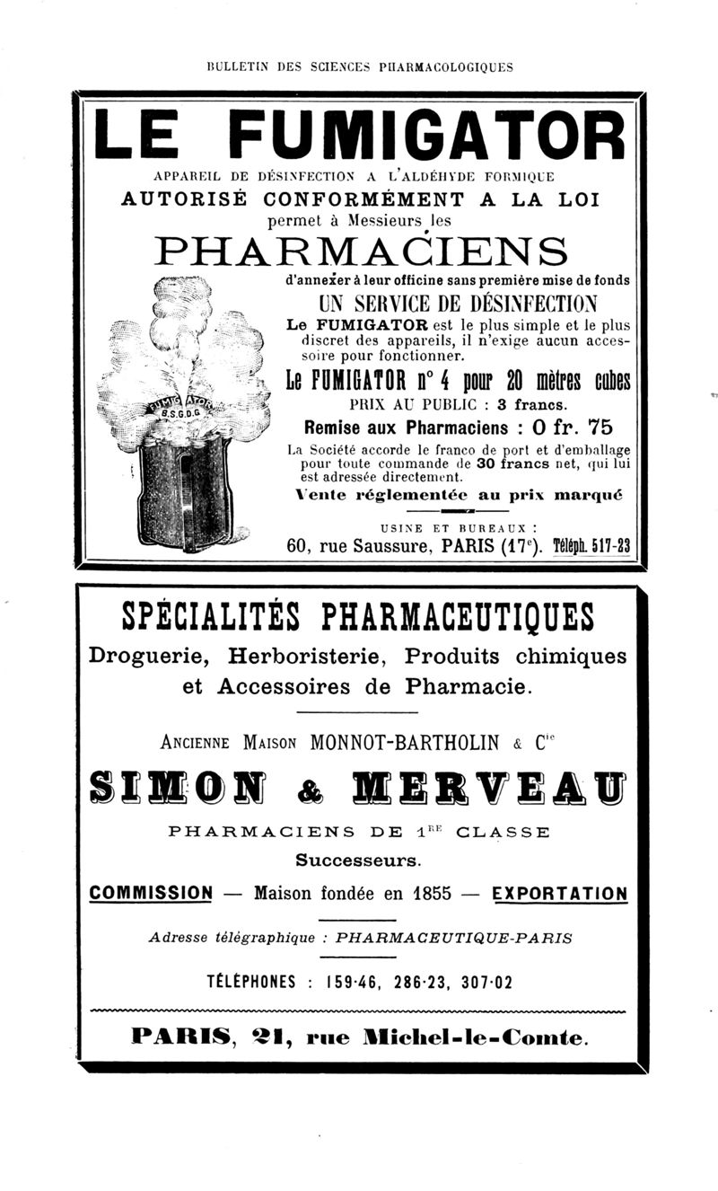 Bulletin des sciences pharmacologiques : organe scientifique et professionnel [Annexes : partie professionnelle et commerciale]