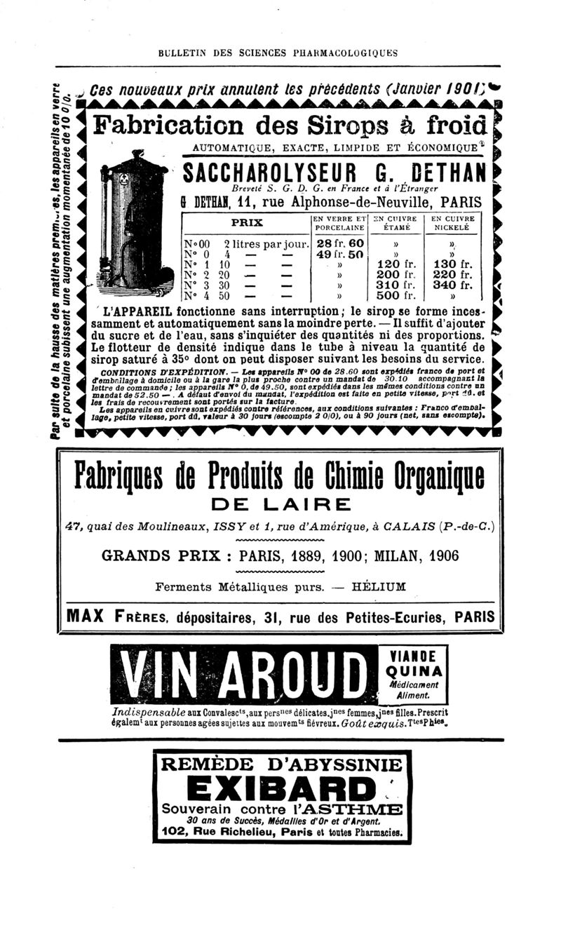 Bulletin des sciences pharmacologiques : organe scientifique et professionnel [Annexes : partie professionnelle et commerciale]