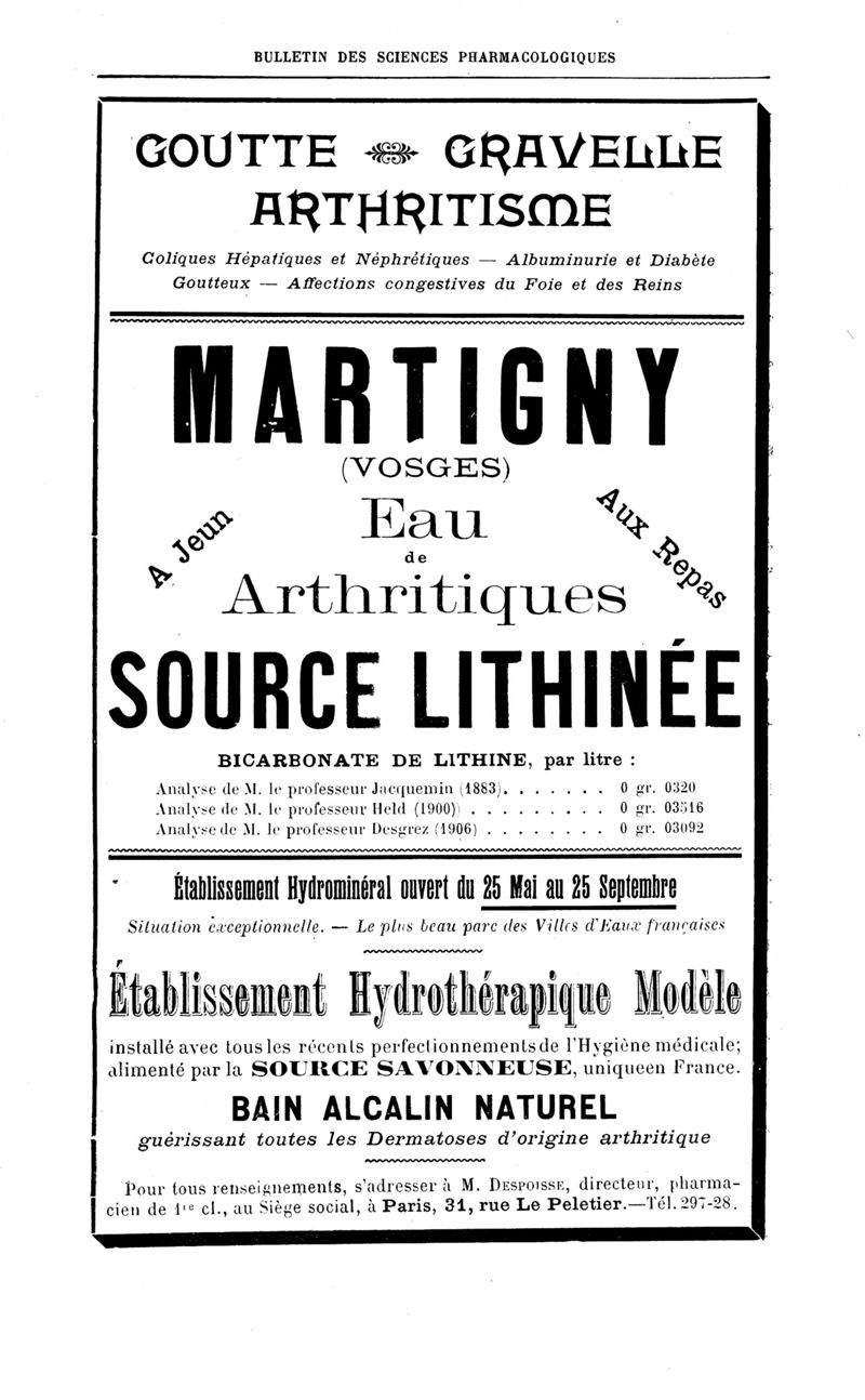 Bulletin des sciences pharmacologiques : organe scientifique et professionnel [Annexes : partie professionnelle et commerciale]