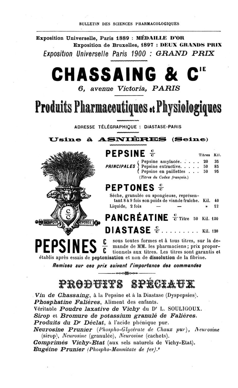 Bulletin des sciences pharmacologiques : organe scientifique et professionnel [Annexes : partie professionnelle et commerciale]