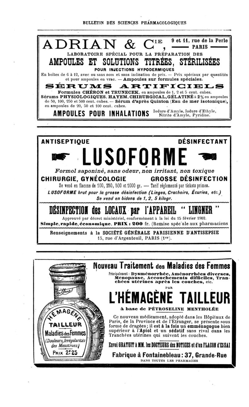 Bulletin des sciences pharmacologiques : organe scientifique et professionnel [Annexes : partie professionnelle et commerciale]