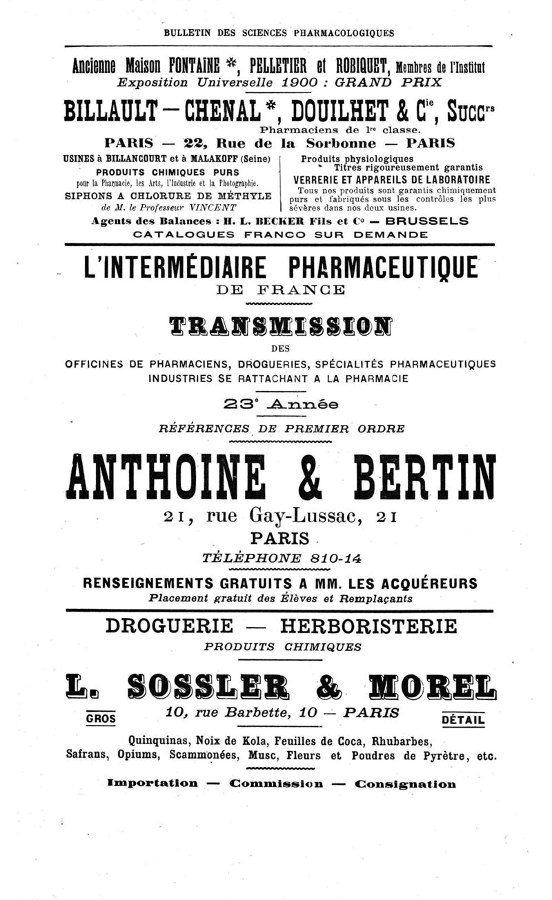 Bulletin des sciences pharmacologiques : organe scientifique et professionnel [Annexes : partie professionnelle et commerciale]