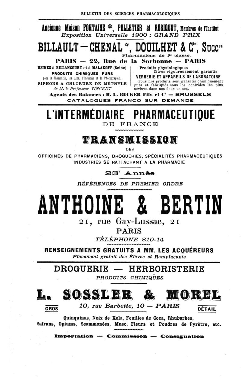 Bulletin des sciences pharmacologiques : organe scientifique et professionnel [Annexes : partie professionnelle et commerciale]