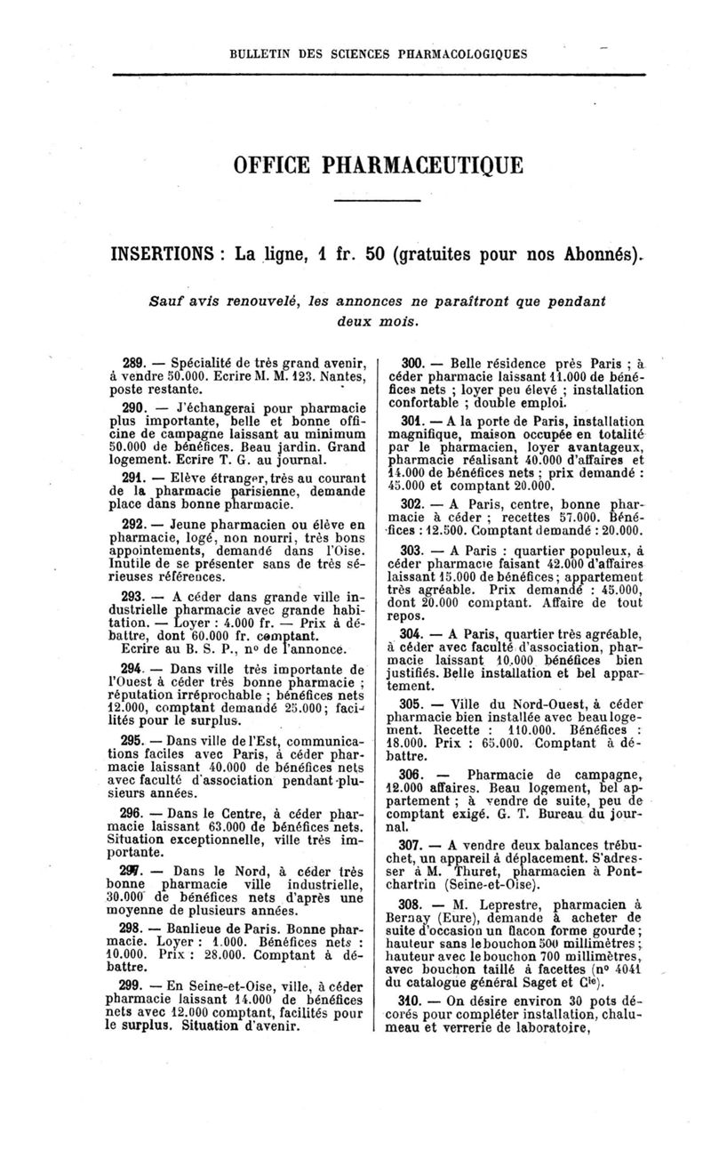 Bulletin des sciences pharmacologiques : organe scientifique et professionnel [Annexes : partie professionnelle et commerciale]