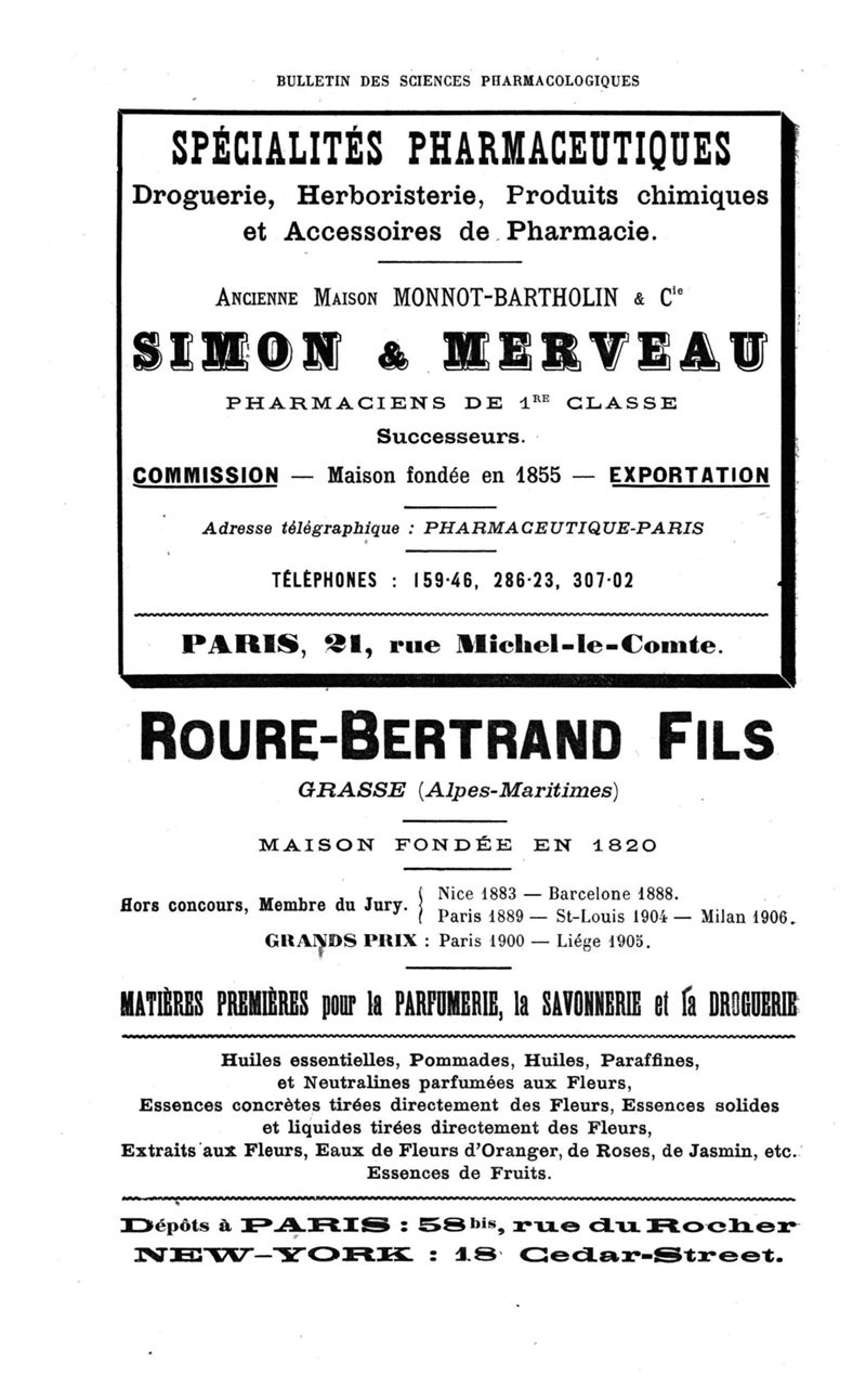 Bulletin des sciences pharmacologiques : organe scientifique et professionnel [Annexes : partie professionnelle et commerciale]