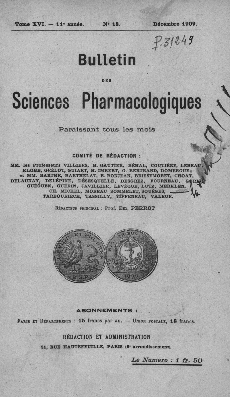 Bulletin des sciences pharmacologiques : organe scientifique et professionnel [Bulletin scientifique]