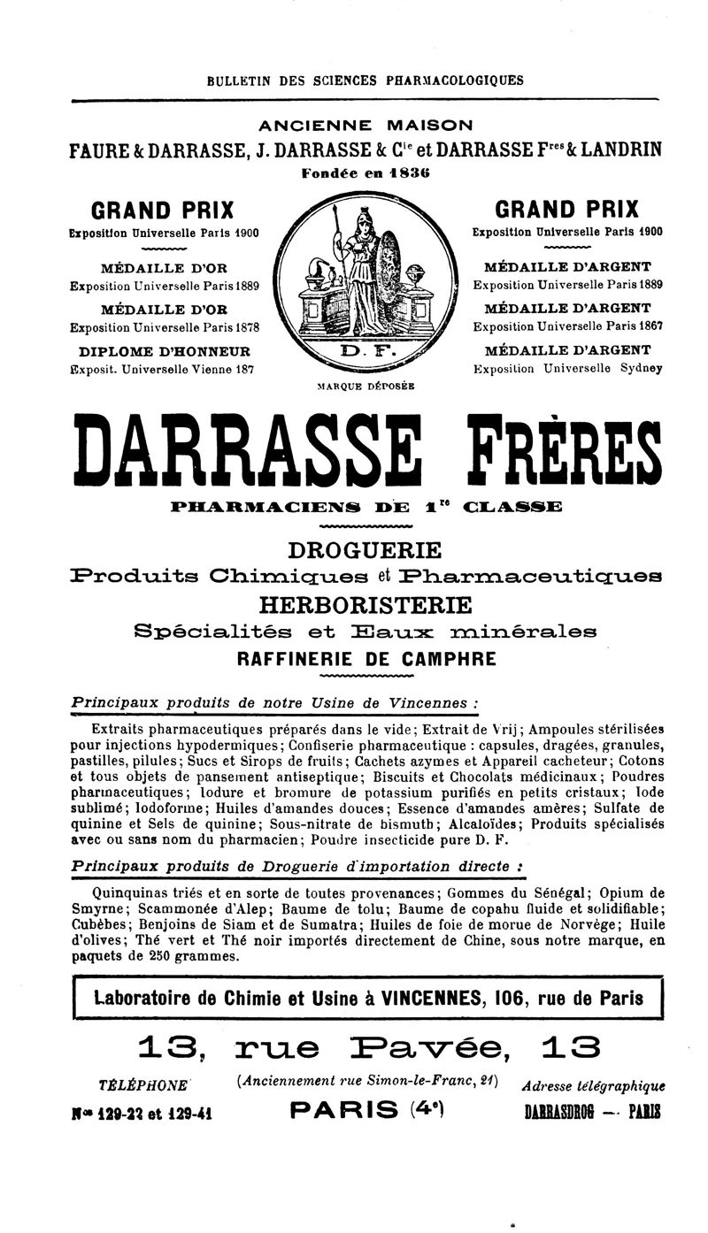 Bulletin des sciences pharmacologiques : organe scientifique et professionnel [Annexes : partie professionnelle et commerciale]