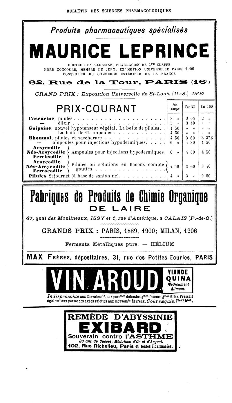 Bulletin des sciences pharmacologiques : organe scientifique et professionnel [Annexes : partie professionnelle et commerciale]
