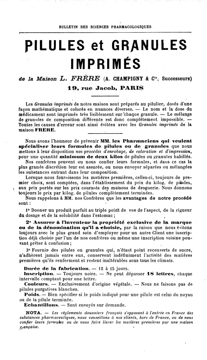 Bulletin des sciences pharmacologiques : organe scientifique et professionnel [Annexes : partie professionnelle et commerciale]
