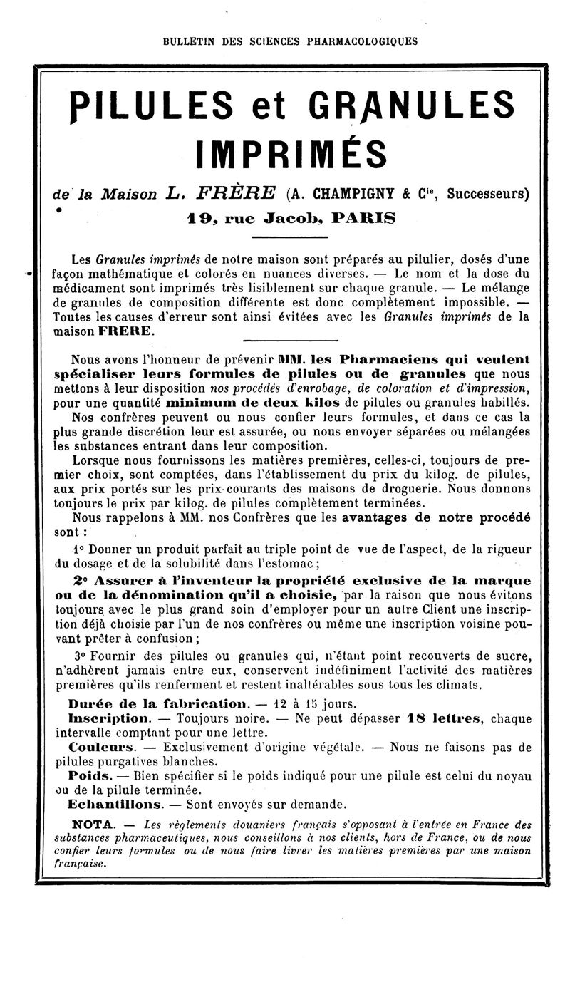 Bulletin des sciences pharmacologiques : organe scientifique et professionnel [Annexes : partie professionnelle et commerciale]