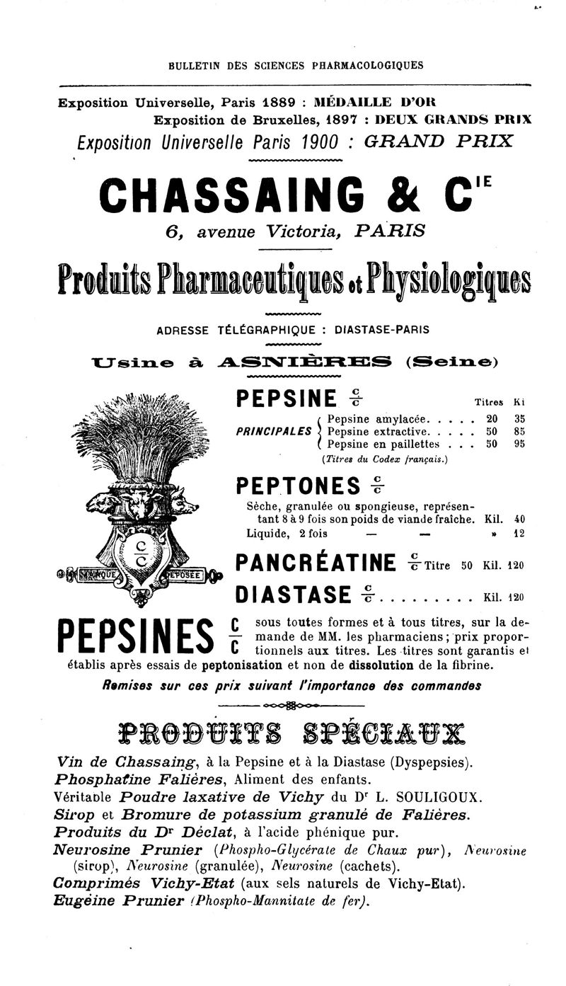 Bulletin des sciences pharmacologiques : organe scientifique et professionnel [Annexes : partie professionnelle et commerciale]