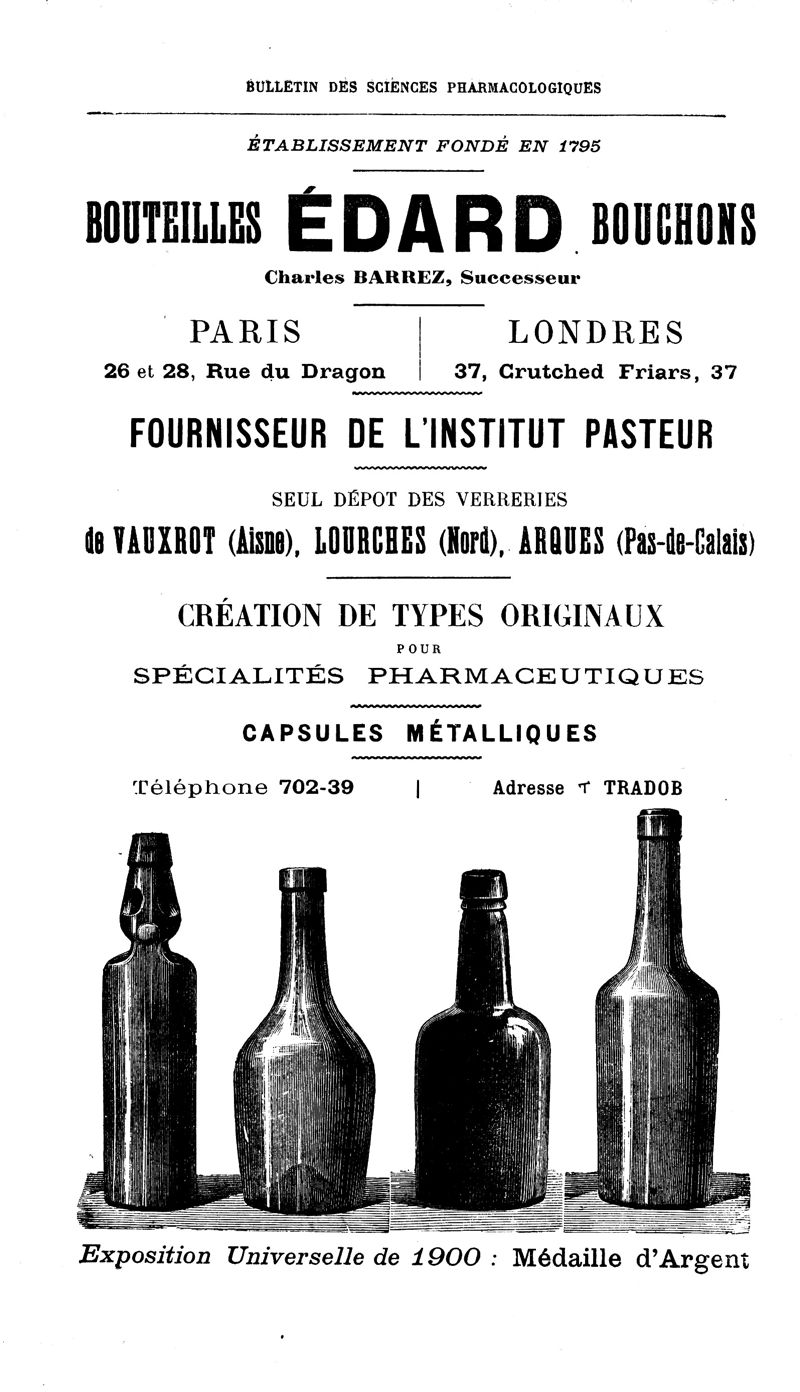 Bulletin des sciences pharmacologiques : organe scientifique et professionnel [Annexes : partie professionnelle et commerciale]