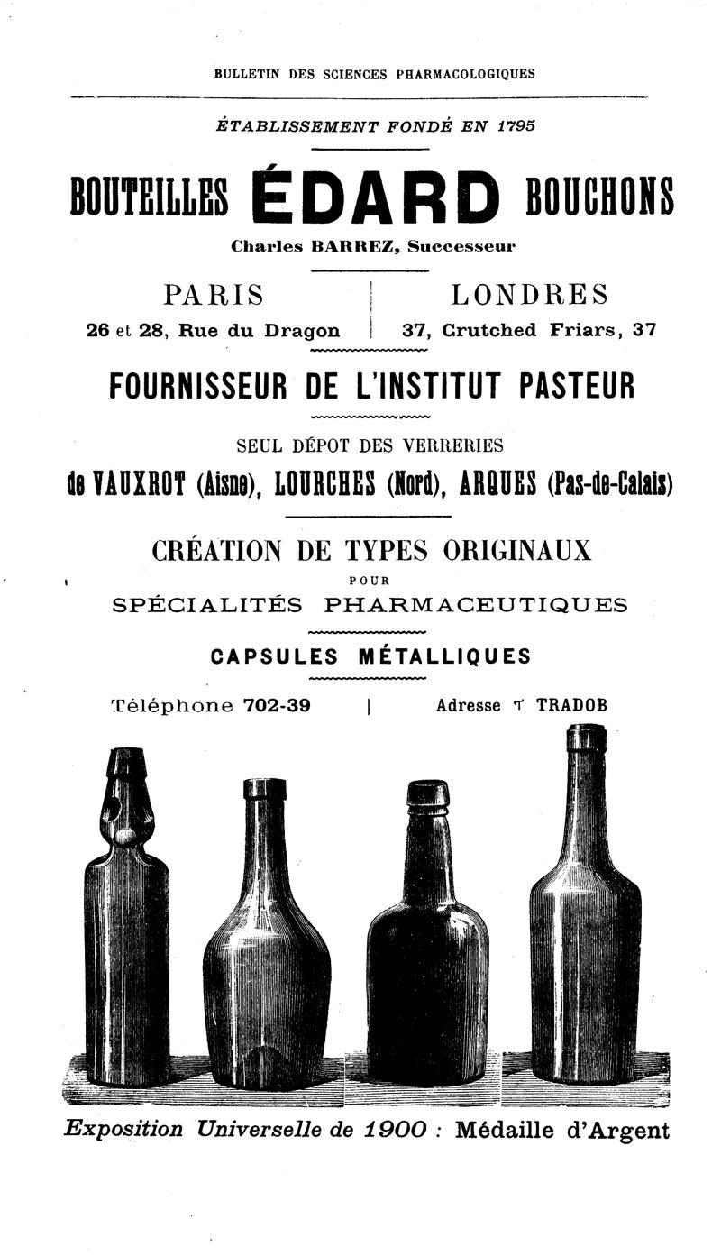 Bulletin des sciences pharmacologiques : organe scientifique et professionnel [Annexes : partie professionnelle et commerciale]