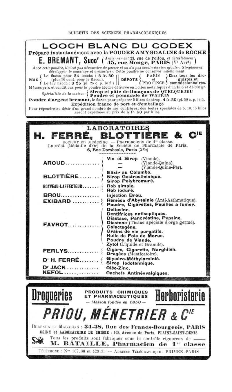 Bulletin des sciences pharmacologiques : organe scientifique et professionnel [Annexes : partie professionnelle et commerciale]