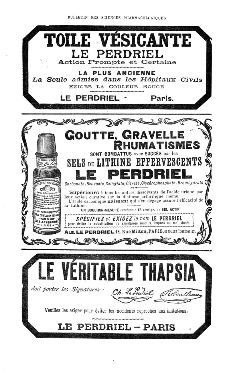 Bulletin des sciences pharmacologiques : organe scientifique et professionnel [Annexes : partie professionnelle et commerciale]
