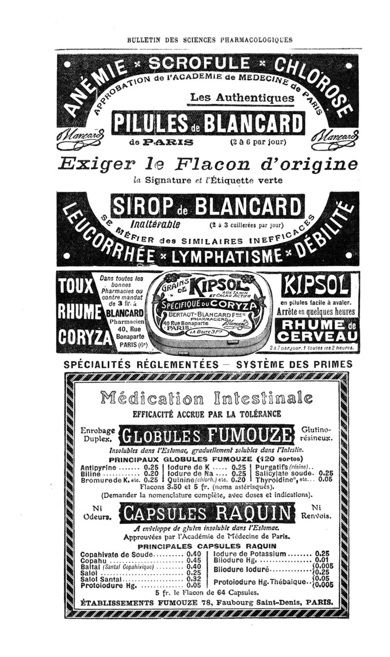 Bulletin des sciences pharmacologiques : organe scientifique et professionnel [Annexes : partie professionnelle et commerciale]