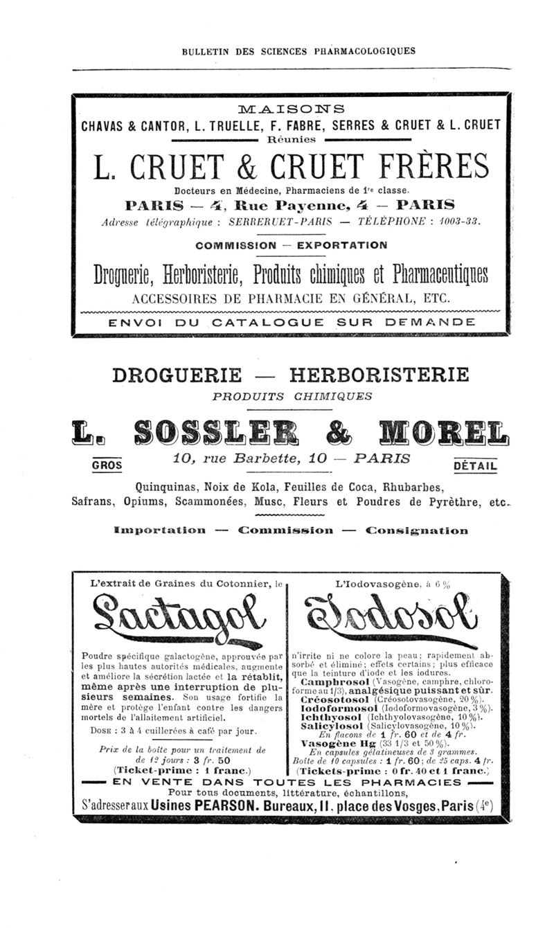Bulletin des sciences pharmacologiques : organe scientifique et professionnel [Annexes : partie professionnelle et commerciale]