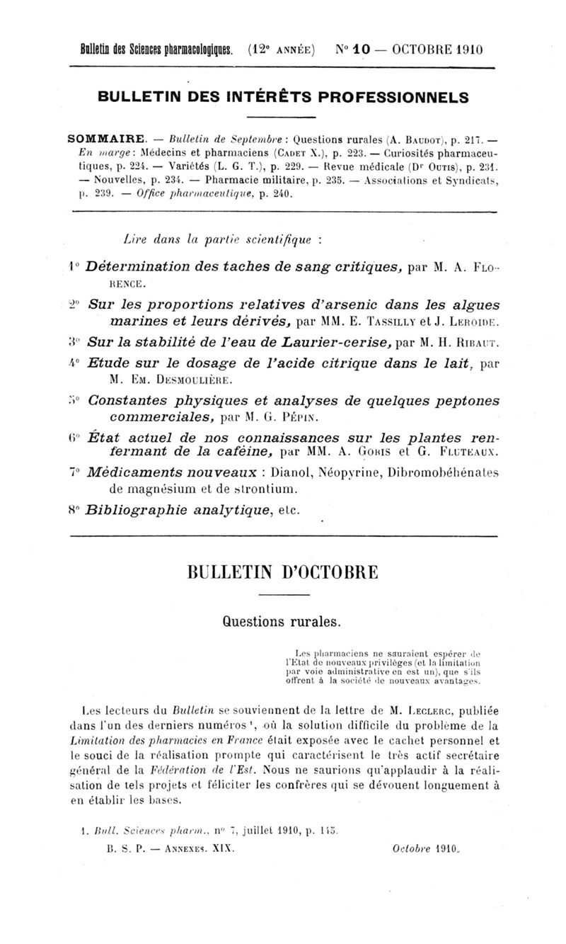 Bulletin des sciences pharmacologiques : organe scientifique et professionnel [Annexes : partie professionnelle et commerciale]