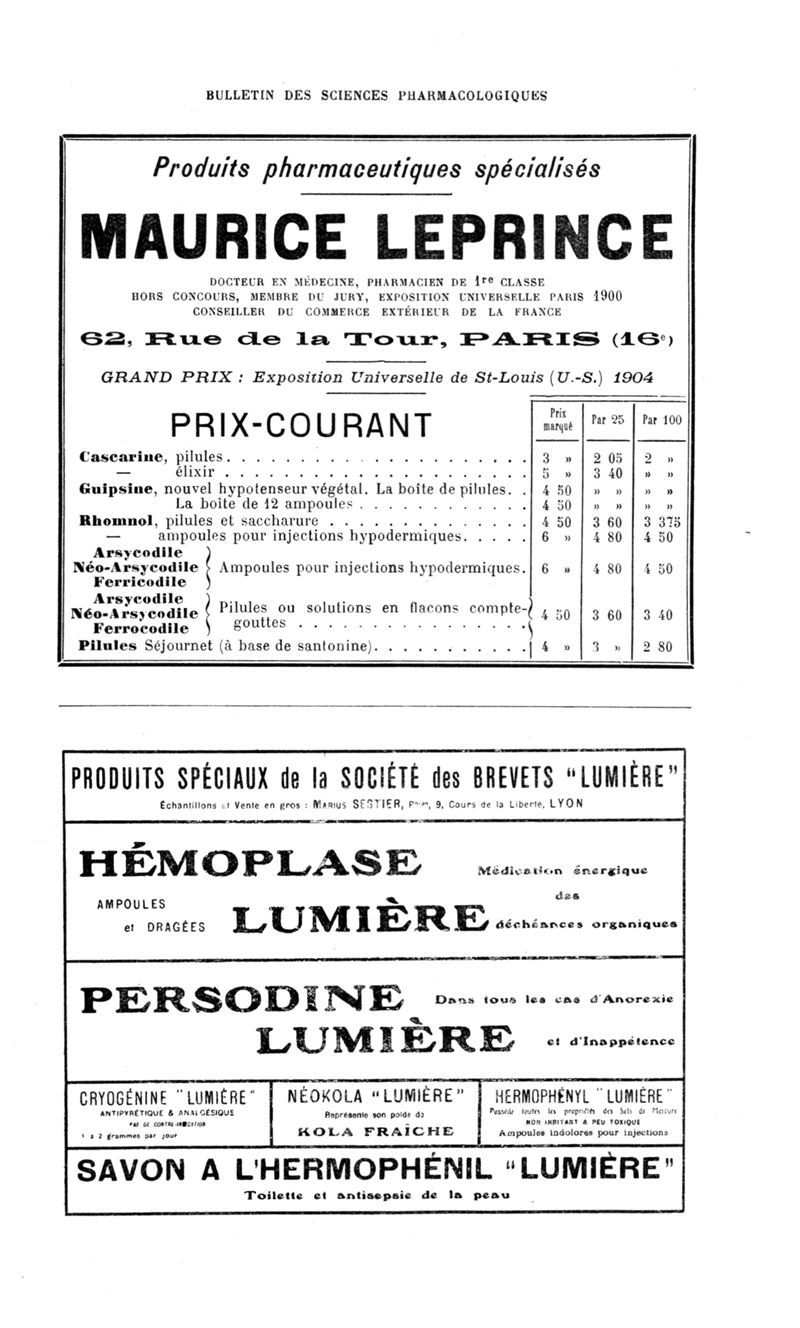 Bulletin des sciences pharmacologiques : organe scientifique et professionnel [Annexes : partie professionnelle et commerciale]