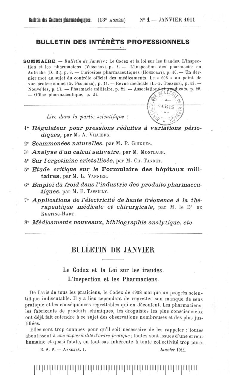 Bulletin des sciences pharmacologiques : organe scientifique et professionnel [Annexes : partie professionnelle et commerciale]