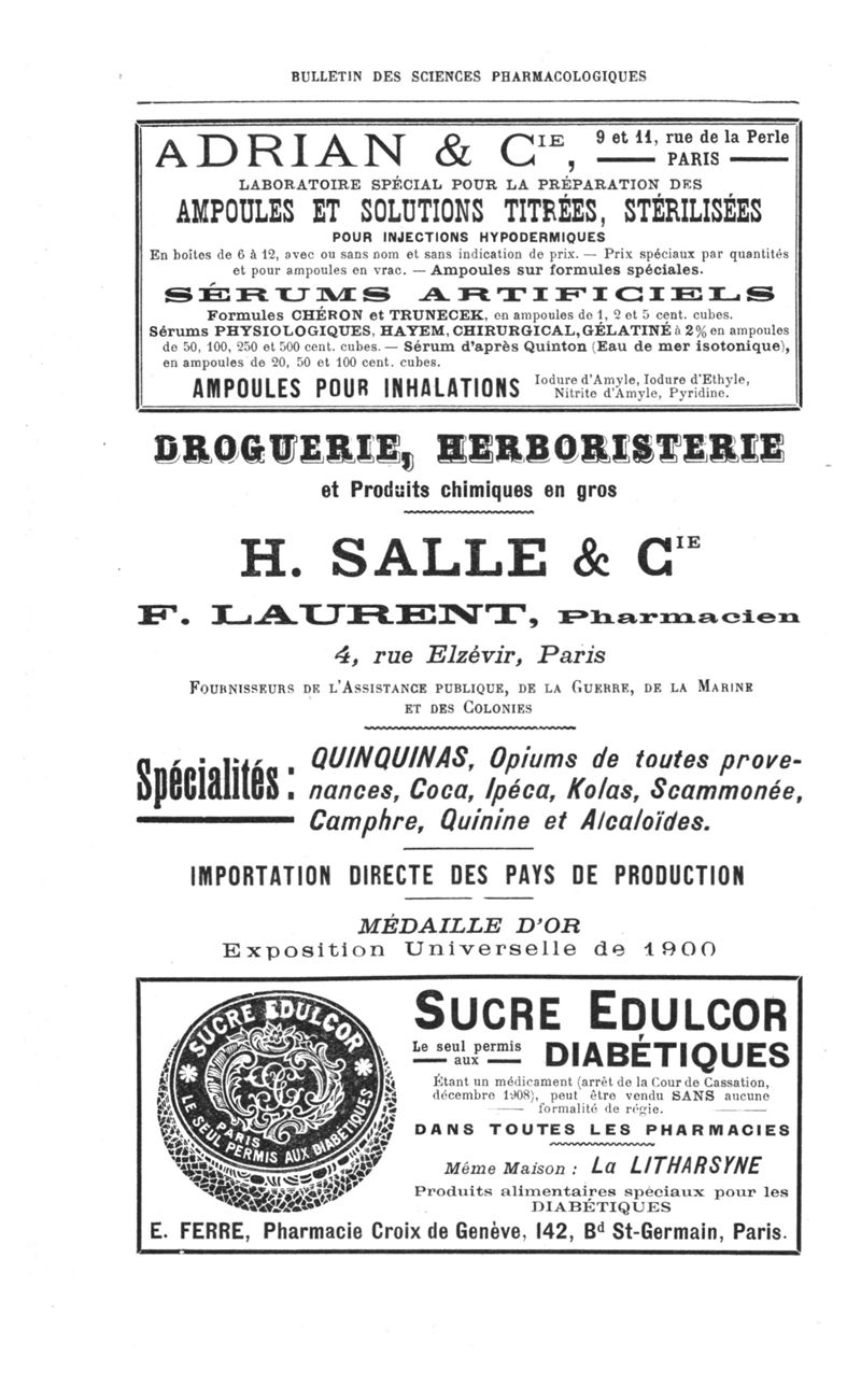 Bulletin des sciences pharmacologiques : organe scientifique et professionnel [Annexes : partie professionnelle et commerciale]