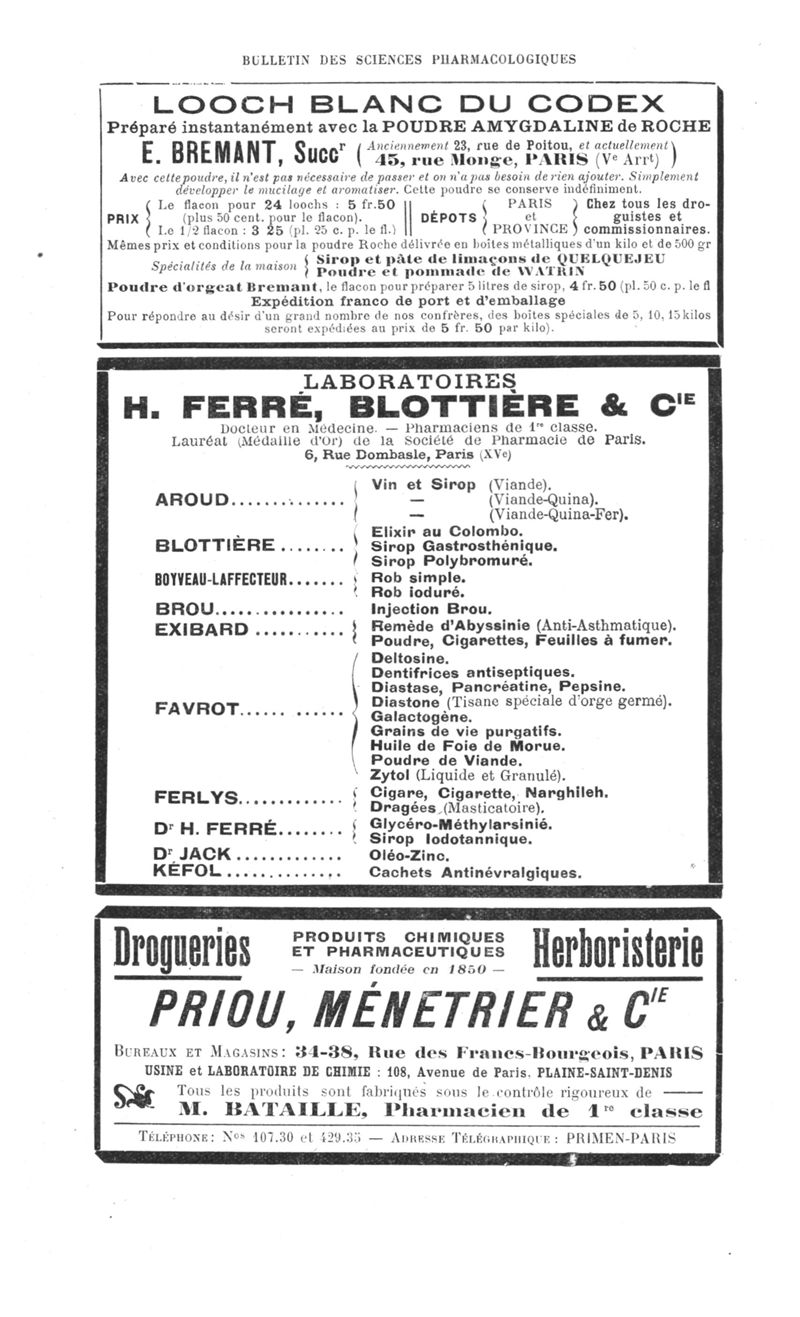 Bulletin des sciences pharmacologiques : organe scientifique et professionnel [Annexes : partie professionnelle et commerciale]