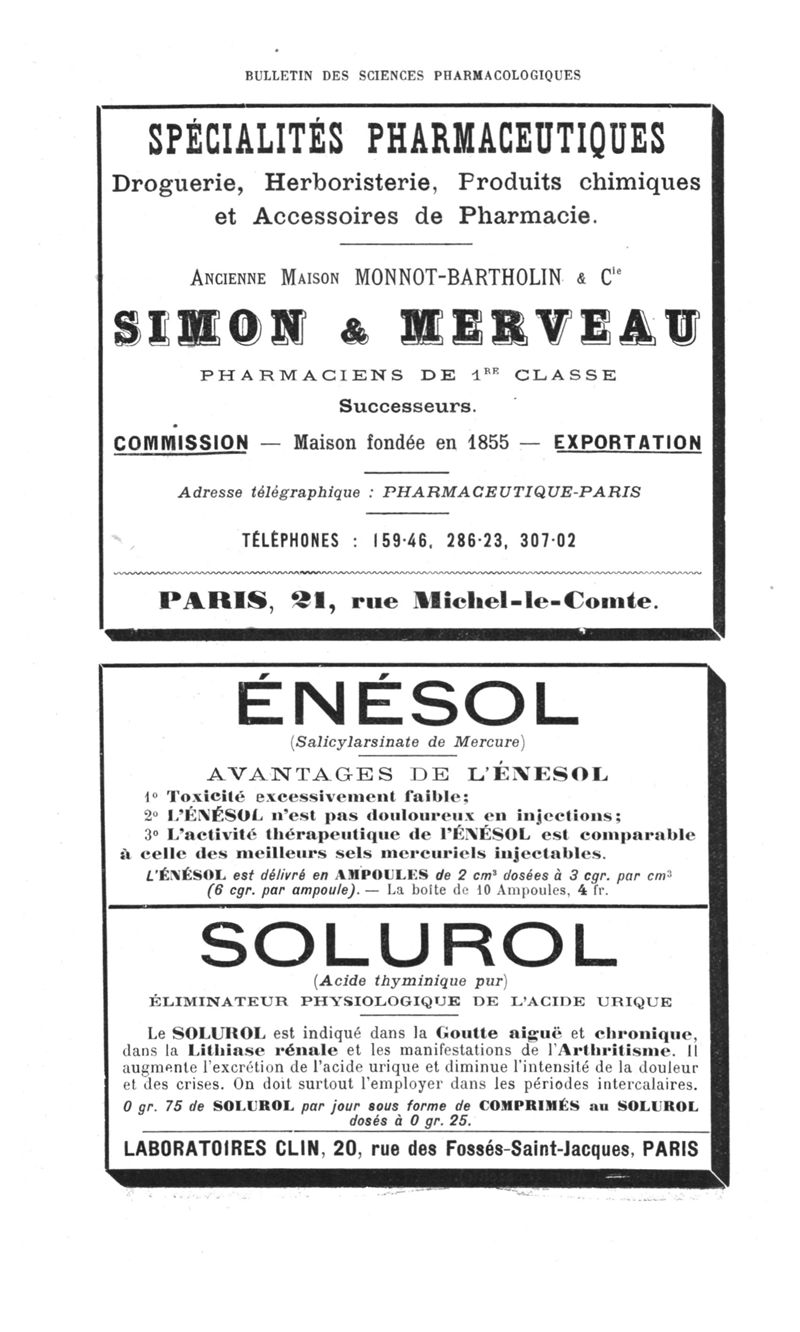 Bulletin des sciences pharmacologiques : organe scientifique et professionnel [Annexes : partie professionnelle et commerciale]